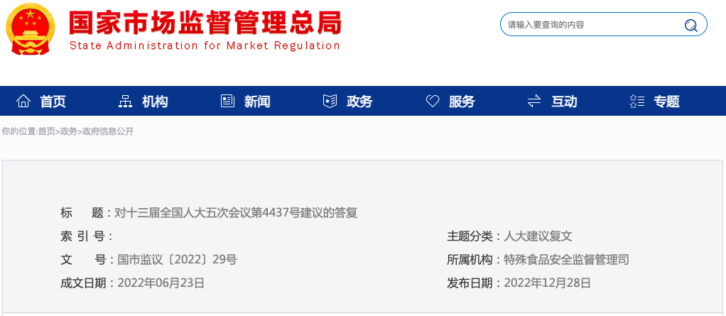 我們非常贊同您在建議中提到的“盡快出臺(tái)特醫(yī)食品臨床使用相關(guān)配套政策和法規(guī),解決特醫(yī)食品在醫(yī)院應(yīng)用的通路問(wèn)題”。根據(jù)相關(guān)食品安全國(guó)家標(biāo)準(zhǔn)規(guī)定,特醫(yī)食品必須在醫(yī)生或臨床營(yíng)養(yǎng)師指導(dǎo)下,單獨(dú)或與其他食品配合食用。為規(guī)范和促進(jìn)特醫(yī)食品在醫(yī)療機(jī)構(gòu)經(jīng)營(yíng)使用行為,我們主動(dòng)與國(guó)家衛(wèi)生健康委加強(qiáng)溝通,推動(dòng)特醫(yī)食品在臨床機(jī)構(gòu)規(guī)范使用,同時(shí)指導(dǎo)各省級(jí)市場(chǎng)監(jiān)管部門聯(lián)合或配合省級(jí)衛(wèi)生健康行政部門發(fā)布相關(guān)管理制度。截至目前,吉林、黑龍江、上海、江蘇、湖北等省(市)發(fā)布了相關(guān)文件,解決特醫(yī)食品在臨床機(jī)構(gòu)使用的瓶頸和堵點(diǎn),有效規(guī)范醫(yī)療機(jī)構(gòu)的合理使用,保障食品安全,促進(jìn)產(chǎn)業(yè)發(fā)展。